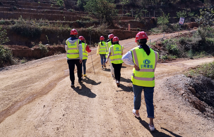 隨后,大家按照既定路線,按要求佩戴好安全帽,穿上反光背心、勞保鞋,以飽滿的精神,高昂的狀態(tài)迅速向山頂出發(fā)。大家互相鼓勵(lì),你追我趕、奮勇爭先,充分展現(xiàn)了彌玉高速項(xiàng)目管理團(tuán)隊(duì)團(tuán)結(jié)向上、爭創(chuàng)一流的精神風(fēng)貌。過程中技術(shù)員程全航和橋梁工程師劉寶分別為大家詳細(xì)介紹了玉屏村1號(hào)大橋、玉屏村2號(hào)大橋和玉屏村3號(hào)大橋的工程概況及施工進(jìn)度情況。大約歷經(jīng)1個(gè)小時(shí),安全部同事一馬當(dāng)先,率先登頂,大家熱烈歡呼并合影留念。