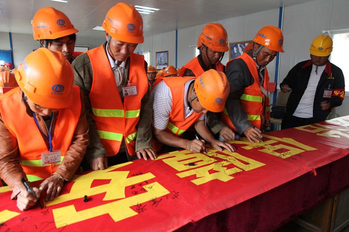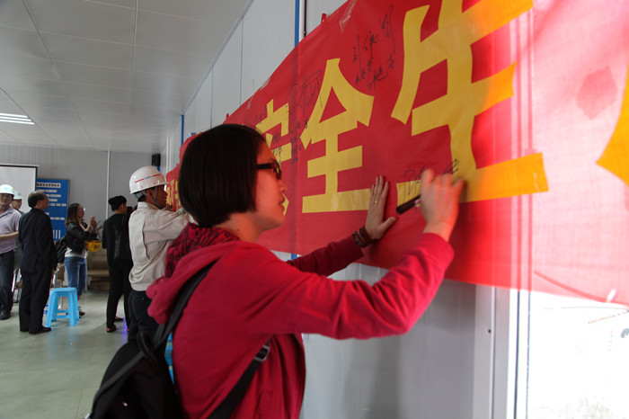 勞務(wù)班組在布標(biāo)上簽字