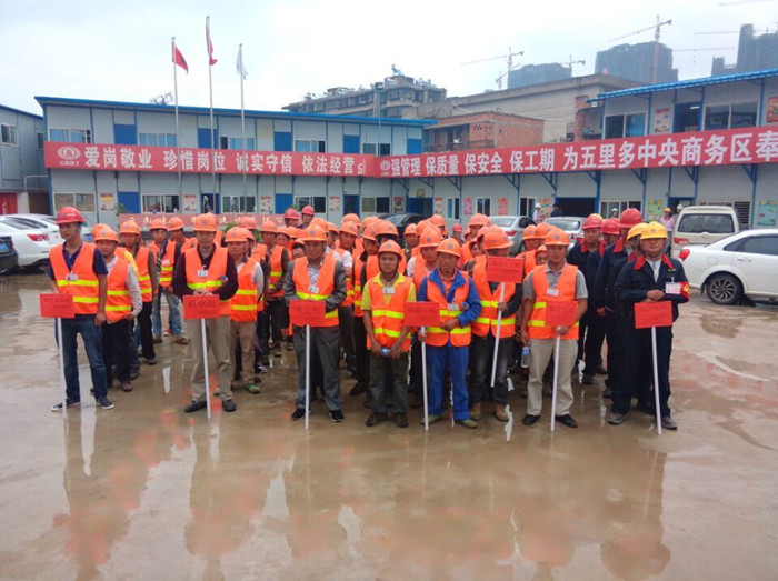 6月5日,五〇七直管項(xiàng)目部在五里中央商務(wù)區(qū)項(xiàng)目部舉行了2015年“安全生產(chǎn)月”啟動(dòng)儀式,直管部領(lǐng)導(dǎo)、公司安全管理部、甲方及監(jiān)理代表、項(xiàng)目部各個(gè)勞務(wù)班組的操作人員、項(xiàng)目部管理人員、直管部管理人員共計(jì)95人參加了此次活動(dòng)。