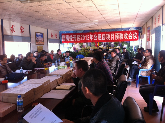 技術(shù)支持: 方森科技 12月26日,由昆明經(jīng)濟技術(shù)開發(fā)區(qū)建設(shè)工程質(zhì)量安全監(jiān)督站、云南航天工程物探檢測股份有限公司、中國有色金屬工業(yè)昆明勘察設(shè)計研究院、昆明營造工程設(shè)計有限公司、云南恒信造價咨詢有限公司、昆明建設(shè)咨詢監(jiān)理有限公司、云南省城鄉(xiāng)投資建設(shè)有限公司、云南建工第五建設(shè)有限公司、云南建工第六建筑工程有限公司、云南建工第四建設(shè)有限公司等單位組成的驗收組對昆明經(jīng)濟技術(shù)開發(fā)區(qū)2012年公共租賃住房與商品房混合居住社區(qū)項目1標段進行了竣工預(yù)驗收。