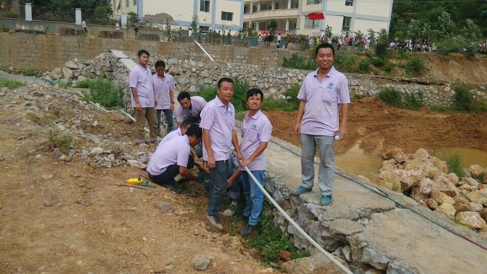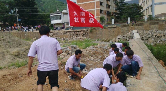 項(xiàng)目部組織了近30名管理人員和班組骨干人員,調(diào)集相關(guān)的機(jī)械設(shè)備和救援物資,將“云南建工抗震救災(zāi)”的標(biāo)語貼于車身前,于8月4日10:00時(shí)趕赴災(zāi)區(qū),10:40到達(dá)魯?shù)橹翞?zāi)區(qū)路口時(shí),由于前方道路實(shí)行交通管制以保證救援車隊(duì)及救護(hù)車輛通行,項(xiàng)目管理人員遂棄車步行35公里,于當(dāng)晚19:00時(shí)抵達(dá)震中龍頭山鎮(zhèn)后,不顧疲勞、忍著饑餓,馬上投入了搶修輸水管道、對相關(guān)受災(zāi)人群進(jìn)行問候和發(fā)放物資的工作中,為抗震救災(zāi)貢獻(xiàn)一份力量。截止8月5日下午14時(shí)許,項(xiàng)目部人員仍堅(jiān)守在災(zāi)區(qū)最前線,繼續(xù)抗震救災(zāi)。