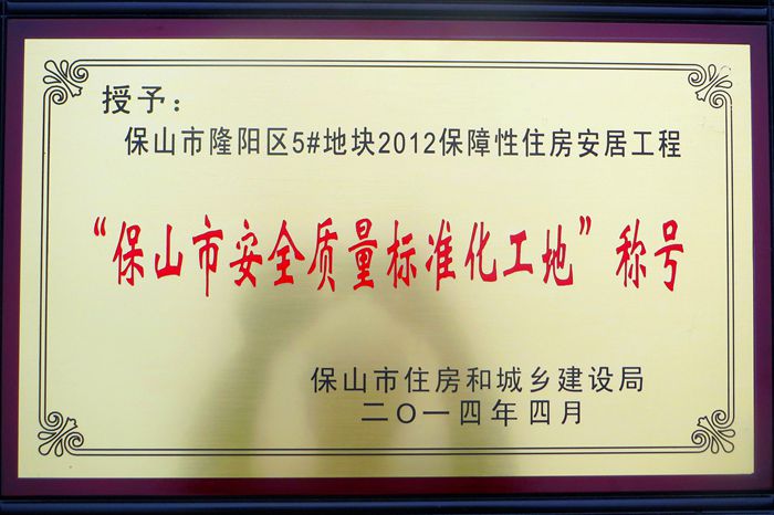 此前,保山市隆陽區(qū)5#地塊項(xiàng)目榮獲“保山市安全質(zhì)量標(biāo)準(zhǔn)化示范工地”的稱號(hào),更進(jìn)一步的提升了公司在保山地區(qū)的企業(yè)形象和社會(huì)影響力。同時(shí)隆陽區(qū)5#地塊也是集團(tuán)各參建公司保山片區(qū)保障性住房工程中唯一申請(qǐng)省標(biāo)準(zhǔn)化示范工地的項(xiàng)目。