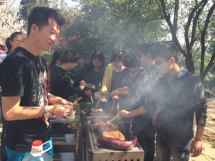 為了讓女職工們安心過節(jié),男職工搭帳篷、提水、抬燒烤箱、燒菜,主動提供熱情服務(wù)。女職工們便一起撿菜、切菜,大家談家庭、談工作,氛圍非常輕松。