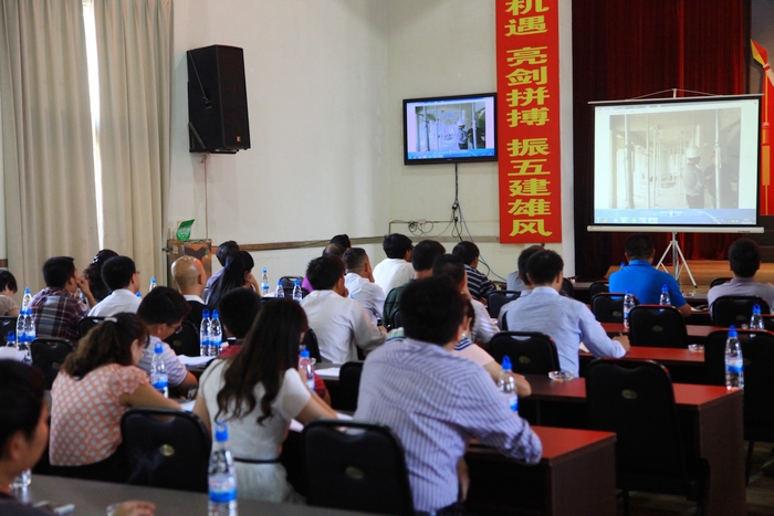 2013年7月15日,公司在禮堂召開2013年二季度生產會暨“五位一體”工作會,對公司42個工地在二季度安全(包含設備管理、臨時用電、腳手架搭設、高處作業(yè),現(xiàn)場文明施工、消防設施等方面)、質量、技術、進度和成本等方面存在的不足及優(yōu)秀做法用圖文并茂的方式進行了總結分析,會議還對在二季度綜合評比較好的6個項目部、1個青年文明項目部進行了表彰,同時對較差的項目部進行了通報。公司黨委書記李興奎,副總經理、總工程師焦倫杰,工會主席史呈森,副總經理楊凡及各直管部主要領導及相關人員共計138人參加了會議。