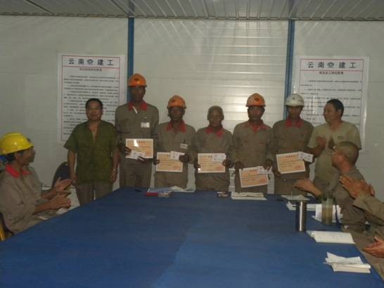 為確保勞動(dòng)競(jìng)賽順利開(kāi)展,項(xiàng)目部首先成立了競(jìng)賽活動(dòng)領(lǐng)導(dǎo)小組,結(jié)合生產(chǎn)實(shí)際,制定了行之有效的《勞動(dòng)競(jìng)賽活動(dòng)實(shí)施辦法》。競(jìng)賽活動(dòng)參賽對(duì)象分為操作班組競(jìng)賽和職工崗位競(jìng)賽,操作班組競(jìng)賽以專(zhuān)業(yè)班組為單位,以爭(zhēng)創(chuàng)“紅旗班組”為競(jìng)賽內(nèi)容,參賽班組涉及木工、鋼筋、混凝土、石工、機(jī)械運(yùn)轉(zhuǎn)、機(jī)械操作、磚工、裝飾(裝修)8個(gè)專(zhuān)業(yè)工種操作班組;職工崗位競(jìng)賽以爭(zhēng)當(dāng)“崗位先鋒”為內(nèi)容,參賽對(duì)象為項(xiàng)目部全體管理人員和工人(包括緬籍工人)。操作班組競(jìng)賽和職工崗位競(jìng)賽又各自有具體的考核內(nèi)容。