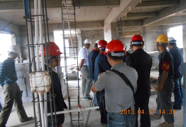 在陽光花園小區(qū)(一標(biāo)段)項(xiàng)目經(jīng)理張學(xué)坤的引導(dǎo)陪同下,大家對已封頂?shù)腂1、B2、B3、B5棟現(xiàn)場進(jìn)行了參觀。該項(xiàng)目在安全、質(zhì)量、進(jìn)度方面得到了參觀人員的肯定,同時他們也對項(xiàng)目存在的不足提出了寶貴意見。