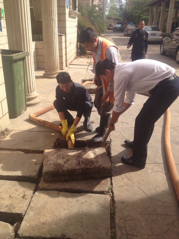 技術(shù)支持: 方森科技 2013年3月25日下午,物管公司組織工作人員對南疆花園小區(qū)內(nèi)堵塞的下水管道進行了疏通。工作人員利用鏟子等工具對固狀體的污物進行了清掏處理,實在無法弄出來的就用雙手去摳,在炎熱的天氣下氣味非常刺鼻,工作人員經(jīng)過近4個小時,清理了堵塞的下水管近50米,確保了小區(qū)環(huán)境的整潔、干凈,保證小區(qū)住戶的舒適、安寧,努力建設(shè)美麗、和諧家園。