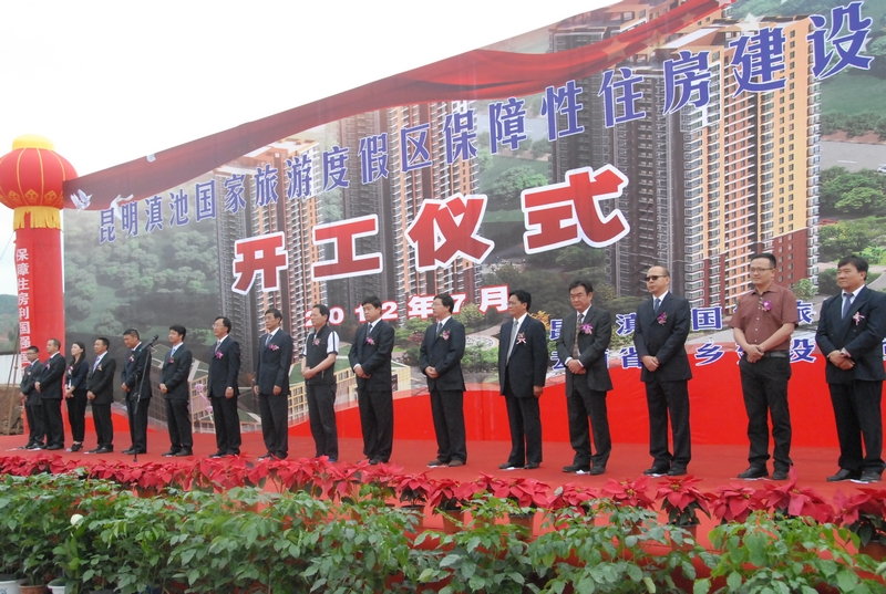 7月29日,昆明市滇池國家旅游度假區(qū)2012年保障性住房舉行開工儀式,昆明市市委常委、市紀(jì)委書記應(yīng)永生,昆明市副市長何波,集團(tuán)公司副總經(jīng)理劉勇,集團(tuán)公司總經(jīng)理助理、城鄉(xiāng)建投公司董事長,公司董事長楊福和出席開工儀式。公司總經(jīng)理魏華等其他部分班子成員攜50名職工參加儀式。