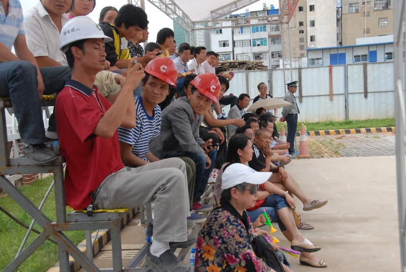 第四直管部全體籃球隊(duì)員在賽前以一曲合唱——《和你一樣》拉開(kāi)了本次比賽的序幕,而相對(duì)于歌曲的清新,直管部準(zhǔn)備的口笛、塑料巴掌等“秘密武器”可是為整個(gè)比賽添加了足夠的激情與歡樂(lè)。公司機(jī)關(guān)和五〇三直管部也組織了各自的啦啦隊(duì)前往工地為隊(duì)員們加油助威。