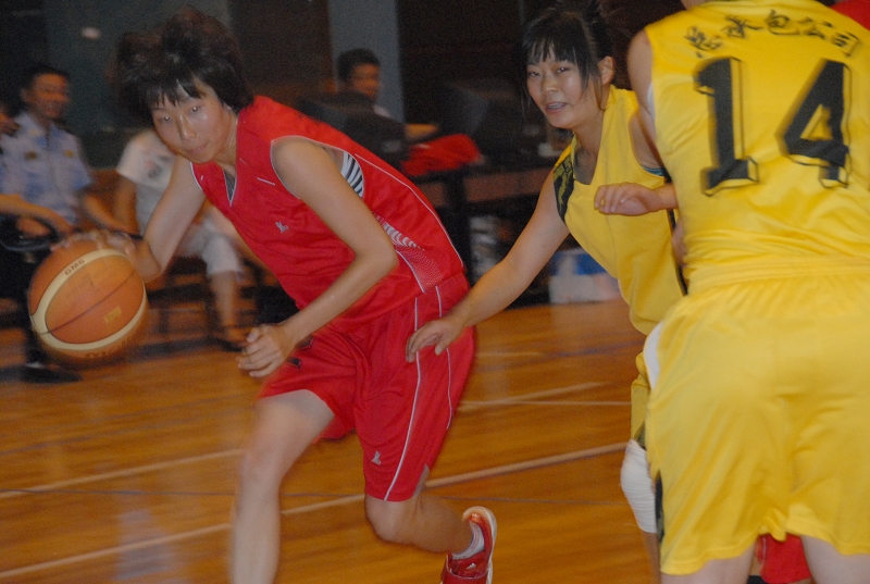 圖為女隊(duì)決賽現(xiàn)場(chǎng) 五公司(紅)VS總承包公司(黃)