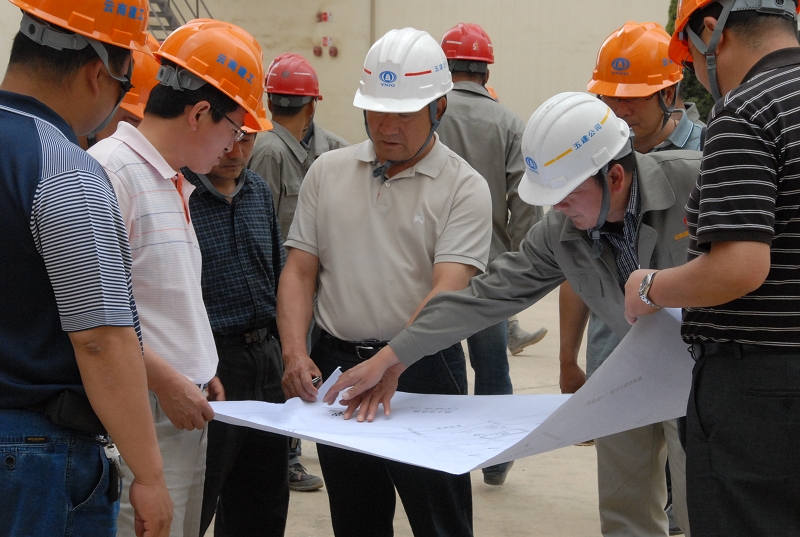 班子成員視察曲靖卷煙廠建設原煙倉庫建安工程時場景