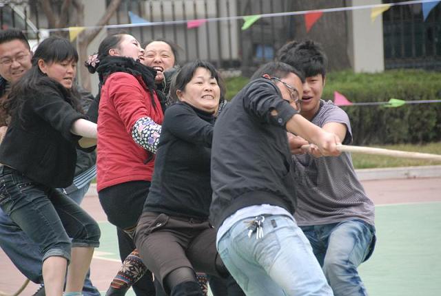 就在大家都以浪漫、溫情的方式慶?!叭ぐ恕钡臅r候,機關(guān)卻以一種力量的方式來慶祝這個節(jié)日,3月8日這天下午,機關(guān)舉行了一場別開生面的拔河賽。各部室人員摩拳擦掌,比賽一開始就把氣氛推向了高潮,口號聲、加油助威聲、參賽隊員鞋子與地面的摩擦聲不絕于耳,平日里踩著高跟鞋的女職工們也都換上了運動鞋,和男職工一塊齊驅(qū)作戰(zhàn),以巾幗不讓須眉的姿態(tài)度過了“三八”節(jié)。