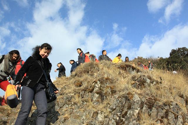 直管部的女職工們即便聽說上山的道路非常崎嶇,到達雞足山腳下,還是個個都精神抖擻整裝待發(fā),堅持徒步三、四個小時。大家都懷著一棵虔誠的心期盼著能早點到達金頂,俯首令人心曠神怡的美景、感受超凡脫俗的境界,通過這種特殊的方式來度過節(jié)日。