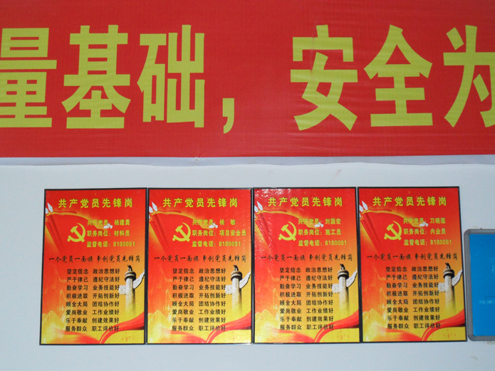 活動提出“讓身份亮起來,讓旗幟樹起來”。為此,黨支部制作了“共產(chǎn)黨員先鋒崗”標牌,標牌上標注姓名、職務崗位、監(jiān)督電話,標牌掛在科室辦公室、項目部辦公室的醒目位置,接受群眾職工監(jiān)督。