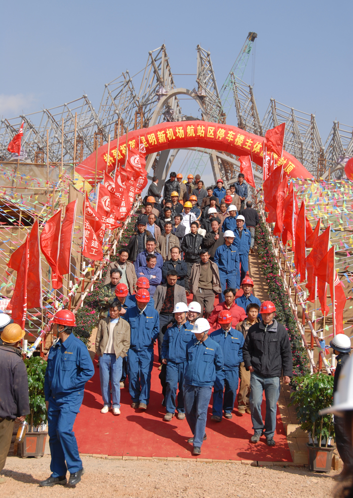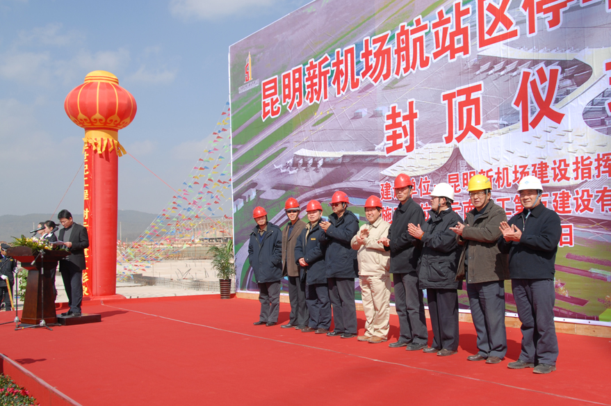 由云南建工第五建設(shè)有限公司昆明新機(jī)場(chǎng)項(xiàng)目部施工的昆明機(jī)場(chǎng)停車樓主體工程,于2009年12月28 實(shí)現(xiàn)結(jié)構(gòu)封頂,封頂儀式是日在昆明新機(jī)場(chǎng)項(xiàng)目部建設(shè)工地隆重舉行。