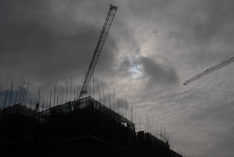 在500年一遇的大日食到來(lái)之際,云南五建公司景秀西苑經(jīng)濟(jì)適用房建設(shè)工地施工秩序井然。由于針對(duì)日食特殊情況提前做好安全防范和員工安全教育,日食時(shí)段公司各工地有效避免了人員和機(jī)電設(shè)備事故。當(dāng)前,五建公司通過(guò)認(rèn)真落實(shí)全國(guó)安全年各項(xiàng)要求,努力確保全年安全生產(chǎn)目標(biāo)的全面實(shí)現(xiàn)。 高玉和 攝影報(bào)道