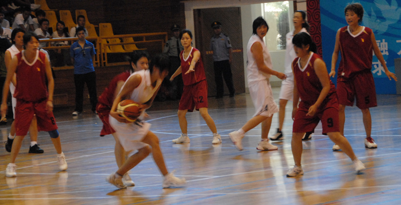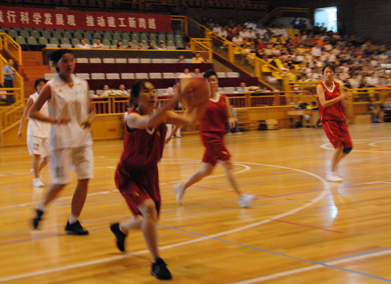 [決賽場(chǎng)地上的燈光,雖說(shuō)已經(jīng)打開(kāi)了20%,但是光線強(qiáng)度相對(duì)于這些跑動(dòng)積極、快如疾風(fēng)的隊(duì)員們來(lái)說(shuō),還是太低,相機(jī)的快門(mén)跟不上主體運(yùn)動(dòng)的速度,拍出來(lái)的照片寫(xiě)意而已,實(shí)在不過(guò)意。作者 于7月5日 8:55]