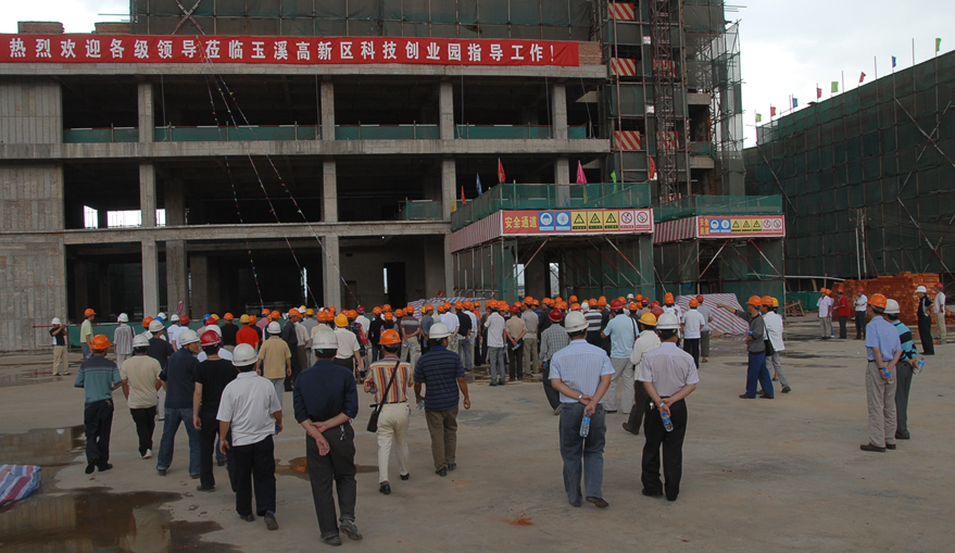 其中,一分公司玉溪高新區(qū)科技創(chuàng)業(yè)園工程項(xiàng)目部在安全施工教育、安全生產(chǎn)制度建立、安全生產(chǎn)監(jiān)督檢查、安全標(biāo)志和安全設(shè)施配置等各方面,進(jìn)一步加強(qiáng)安全施工管理,受到了當(dāng)?shù)亟ㄔO(shè)管理部門(mén)和甲方的高度評(píng)價(jià)。6月24日,玉溪市建設(shè)局組織玉溪市及所屬五縣一區(qū)建設(shè)局及安監(jiān)、質(zhì)監(jiān)、監(jiān)理單位和160多個(gè)三級(jí)以上資質(zhì)的施工企業(yè)人員共250多人,到云南建工五建一分公司施工的玉溪高新區(qū)科技創(chuàng)業(yè)園工程項(xiàng)目部工地觀摩學(xué)習(xí)。