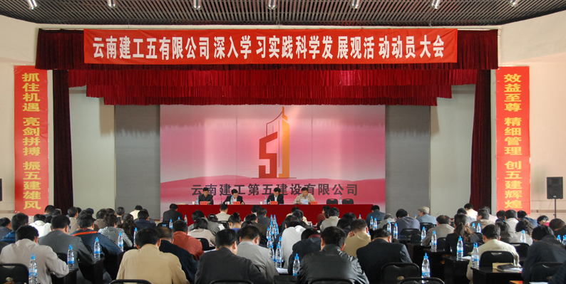 五有限公司董事長、黨委書記楊福和同志代表公司黨委和行政領導班子作動員報告,公司總經理方菊明同志主持動員大會,公司黨委委員丶黨委工作部部長黃云祥同志宣讀了《云南建工第五建設有限公司深入學習實踐科學發(fā)展觀活動組織機構和工作職責的通知》、第一階段工作安排和領導班子成員聯(lián)系指導基層單位開展學習實踐活動的分工。