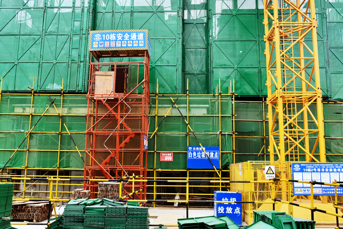 在聽取了空港項目整體實施策劃方案后,項目經(jīng)理莊偉帶領(lǐng)大家從項目大門口開始現(xiàn)場參觀。大門口張貼總平面布置圖、三維場布圖、公司宣傳畫冊、崗位職責等,設(shè)置門禁系統(tǒng)。主道路及施工道路設(shè)置人車分流,右側(cè)設(shè)置花臺和形象宣傳,因地制宜打造工地景觀,創(chuàng)造花園式工地氛圍。生產(chǎn)區(qū)左側(cè)設(shè)置安全宣講臺,進行安全交底和相關(guān)安全條文學(xué)習(xí)。生產(chǎn)區(qū)主入口設(shè)置實名制管理通道。現(xiàn)場采用工具式樓梯,圍擋防護工具化、定型化,消防點、抽煙點、休息區(qū)、衛(wèi)生間、垃圾投放點等一應(yīng)俱全。各參觀人員不停拿出手機拍照,對照自己項目的實際情況提出問題,空港項目管理人員為他們作了詳細解答。