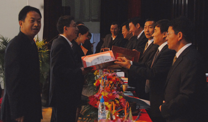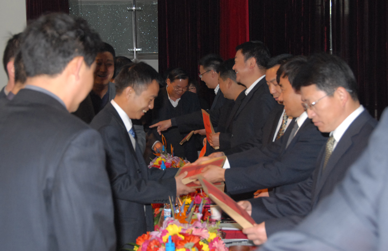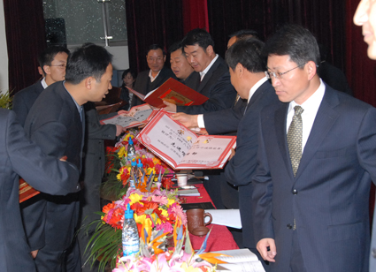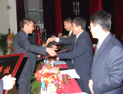 董事長楊福和代表公司、工會主席李興奎代表職工簽訂三項集體合同。