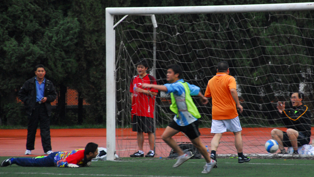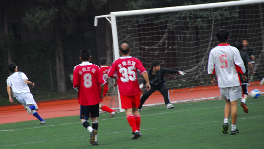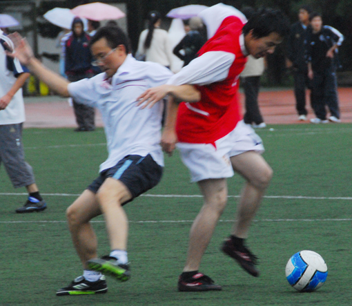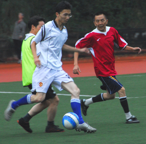 在晚秋的霏霏細雨中,五建五分公司與公司機關(guān)于11月4日舉行了一次足球友誼賽,活躍職工業(yè)余文化生活,增進友誼。 伍軒 攝影