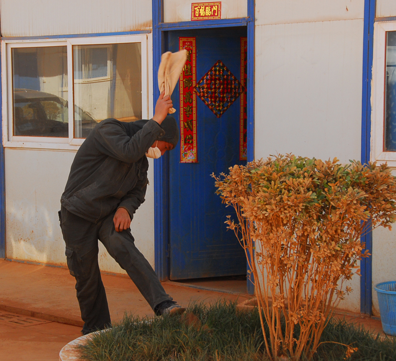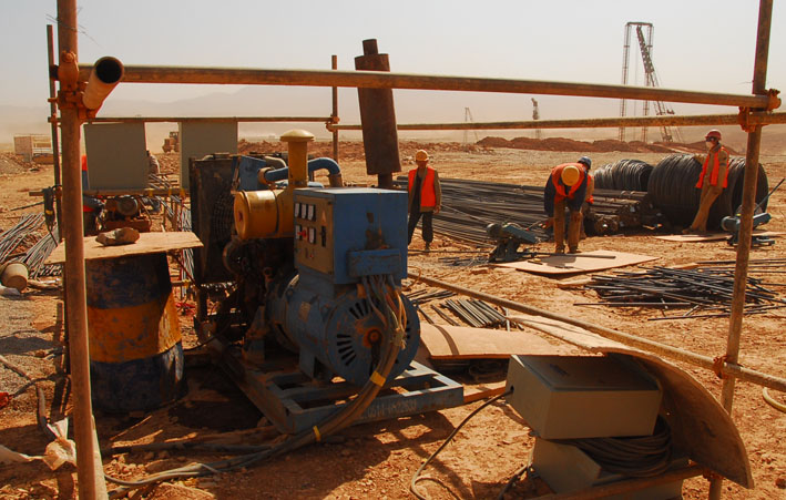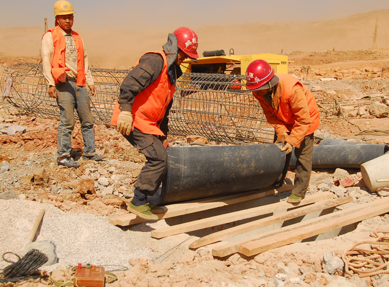 為進(jìn)一步搞好A2標(biāo)段的950多棵人工挖孔樁施工,公司組建了由公司直接管理的新機(jī)場(chǎng)工程項(xiàng)目部。工地上沒(méi)有水,施工用水和生活用水就購(gòu)買(mǎi)從7-8公里以外拉來(lái)的水,項(xiàng)目部在各個(gè)施工點(diǎn)搭建了十幾個(gè)臨時(shí)水池蓄水,以保證施工正常進(jìn)行;工地上沒(méi)有電,為了保證施工用電,工地上自備了多臺(tái)柴油發(fā)電機(jī)發(fā)電 ;春節(jié)后進(jìn)入昆明的多風(fēng)季節(jié),久旱無(wú)雨的新機(jī)場(chǎng)工地上,到處塵土飛揚(yáng)。項(xiàng)目部為每一個(gè)人購(gòu)置了口罩,不管工地上氣溫多高,都帶著口罩作業(yè),全體人員天天都灰頭土臉地奮戰(zhàn)在工地上。