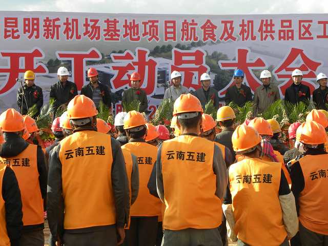 2月18日,由公司承建的東航昆明新機場基地項目航食及機供品區(qū)工程在施工現(xiàn)場舉行開工動員大會,公司總經(jīng)理方菊明、總工程師焦倫杰、總經(jīng)理助理史呈森、安全總監(jiān)劉路明到會參加開工典禮,方菊明代表公司在大會上致辭。