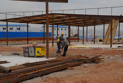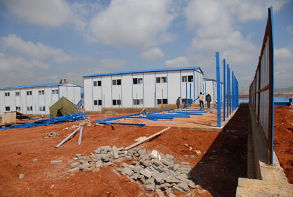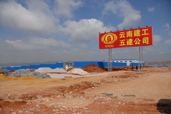 A3 臨設(shè)施工進(jìn)行中。背景是先期開工、已在進(jìn)行主體結(jié)構(gòu)施工的航站樓工程。