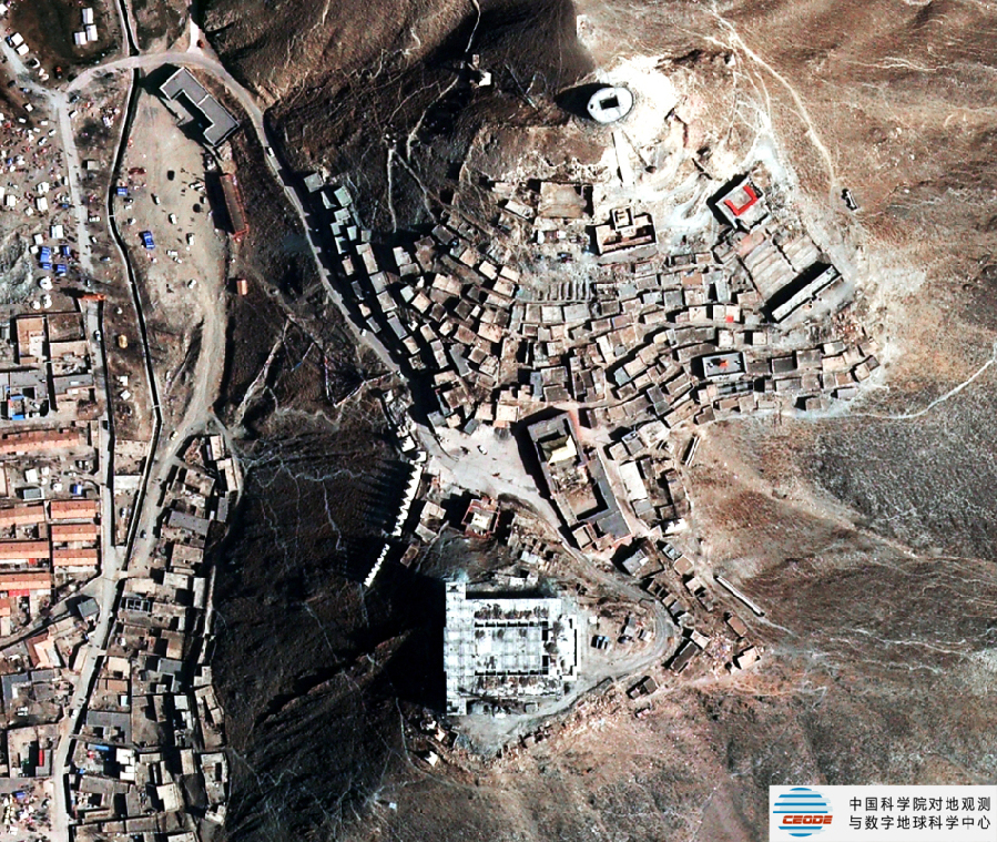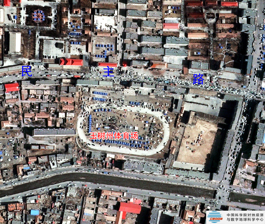 圖片來(lái)源:中科院對(duì)地觀(guān)測(cè)中心 災(zāi)后廣場(chǎng)。2010年04月17日 10:46 中科院對(duì)地觀(guān)測(cè)中心今日最新公布了玉樹(shù)地震災(zāi)區(qū)的航空遙感圖像。中科院對(duì)地觀(guān)測(cè)中心利用2010年4月16日獲取的高分辨率航空遙感數(shù)據(jù),提取出玉樹(shù)州結(jié)古鎮(zhèn)城區(qū)范圍內(nèi)地震破壞最嚴(yán)重或典型地區(qū),使之與GoogleEarth中相應(yīng)位置的震前遙感衛(wèi)星數(shù)據(jù)進(jìn)行對(duì)比,直觀(guān)展現(xiàn)結(jié)古鎮(zhèn)在此次地震中的受影響程度。