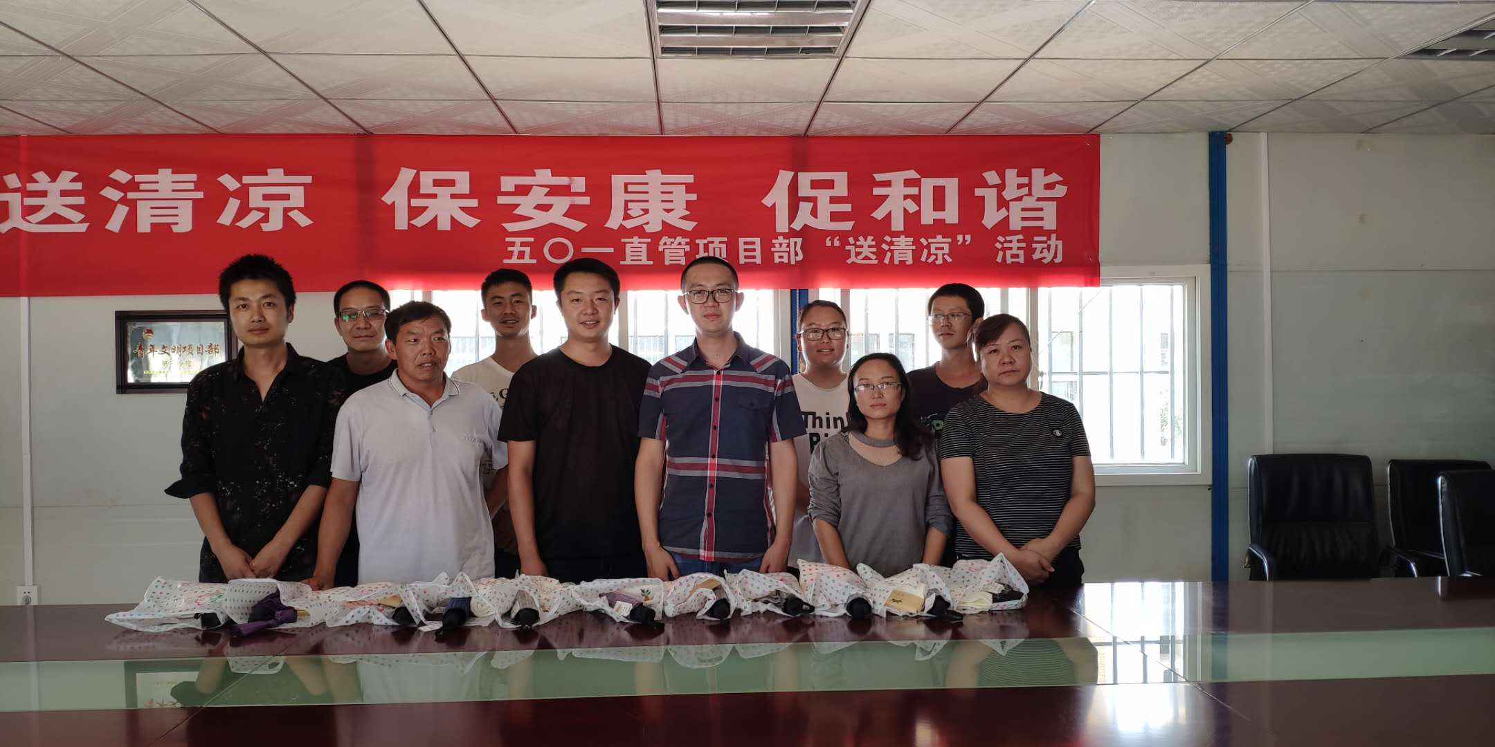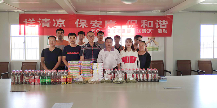 技術(shù)支持: 方森科技時值炎炎夏日,酷暑三伏,為了確保施工節(jié)點的順利完成,五〇一直管項目部的一線職工在高溫烈日下進(jìn)行著夏季高“烤”,為了嚴(yán)格落實防暑降溫工作,切實維護(hù)職工安全健康權(quán)益,6月12日-20日,五〇一直管項目部深入一線開展“送清涼 保安康 促和諧”活動,為奮斗在一線的職工送去絲絲涼意,獻(xiàn)上誠摯關(guān)懷。