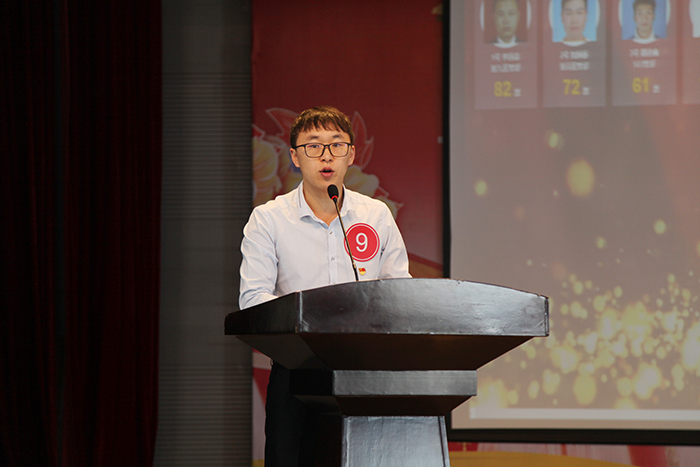 公開競(jìng)選中,選手們要在規(guī)定的4分鐘內(nèi)展示自己,贏得投票。選手們聲情并茂,用一句句樸實(shí)的話語展現(xiàn)了他們吃苦耐勞、堅(jiān)韌不拔的精神面貌,激勵(lì)了在場(chǎng)的每一位青年職工樹立目標(biāo)、懷抱夢(mèng)想、勇于拼搏。9號(hào)選手楊揚(yáng)講述了他進(jìn)駐宣威得祿鄉(xiāng)兩年的扶貧故事,一張張入戶走訪、幫老鄉(xiāng)賣農(nóng)產(chǎn)品的照片深深打動(dòng)了在場(chǎng)觀眾。
