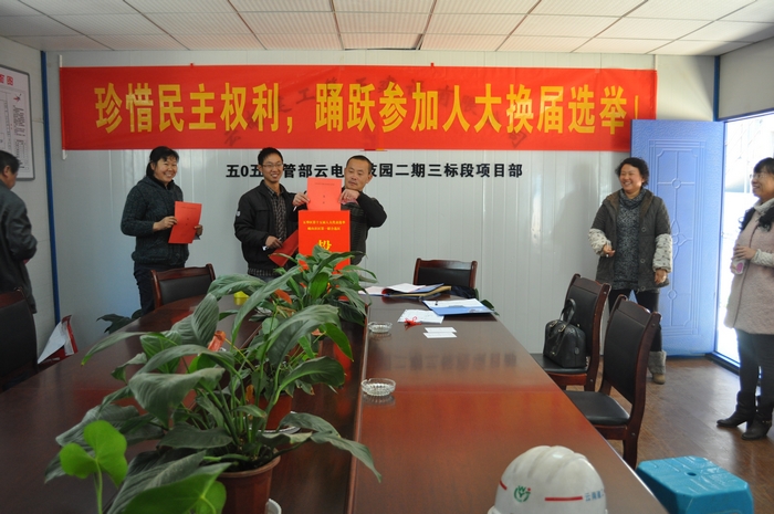 技術(shù)支持: 方森科技 2012年12月26日是五華區(qū)人大代表的選舉日,五〇五直管部作為眠山社區(qū)第一聯(lián)合選區(qū)第七小組,在選舉當日設(shè)置了流動票箱,分別在直管部辦公室、云電科技園項目部、嵩明錦繡蘭苑廉租房項目部進行了選舉。