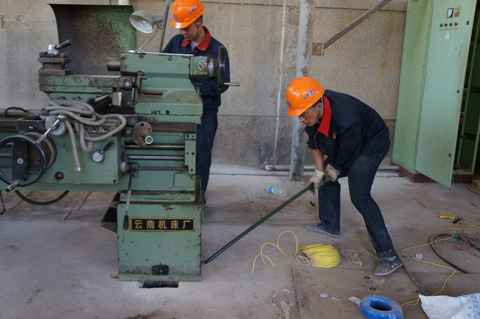 該項(xiàng)目的工程內(nèi)容為配電屏拆除與安裝、平刨壓設(shè)備、鉆床安裝,車床安裝,剪床安裝等。該項(xiàng)目是第二安裝直管項(xiàng)目部獨(dú)立經(jīng)營(yíng)、獨(dú)立承接的項(xiàng)目。項(xiàng)目體量雖然不大,但這是公司時(shí)隔多年后再次與天威云南變壓器股份有限公司的合作,所以項(xiàng)目部也非常重視。為此,項(xiàng)目部在進(jìn)場(chǎng)前特地為8名操作人員定制了工裝,召開了動(dòng)員會(huì),要求全體人員在施工中注重文明禮貌,服從廠區(qū)的統(tǒng)一管理,制定設(shè)備拆裝的安全質(zhì)量方案,快速高效完成這個(gè)項(xiàng)目。