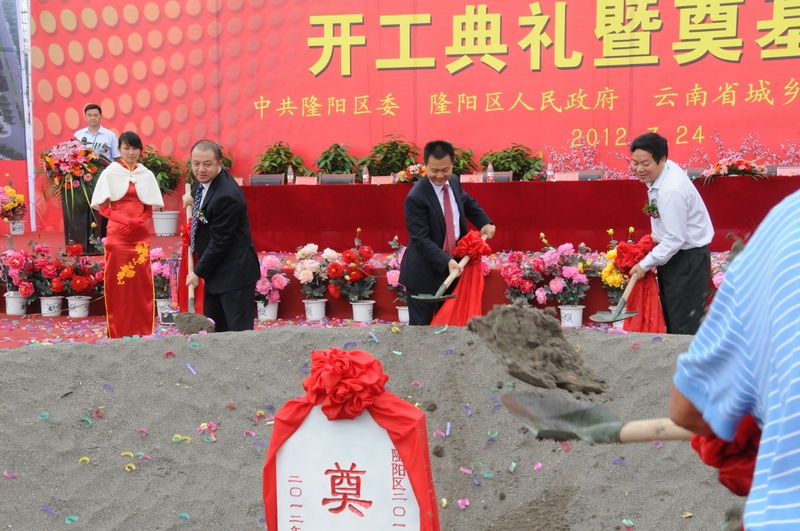 7月24日,保山市隆陽區(qū)2012年保障性住房建設(shè)項目舉行開工奠基儀式,保山市委常委,市政法委書記趙德光,集團(tuán)公司黨委副書記、紀(jì)委書記張戰(zhàn)國,集團(tuán)公司總經(jīng)理助理、城鄉(xiāng)建投公司董事長等領(lǐng)導(dǎo)出席奠基儀式,并共同為項目開工培土奠基。公司董事長楊福和,公司黨委書記、城鄉(xiāng)投保山分公司(指揮部)總經(jīng)理李文智,公司總經(jīng)理魏華等班子成員參加儀式。