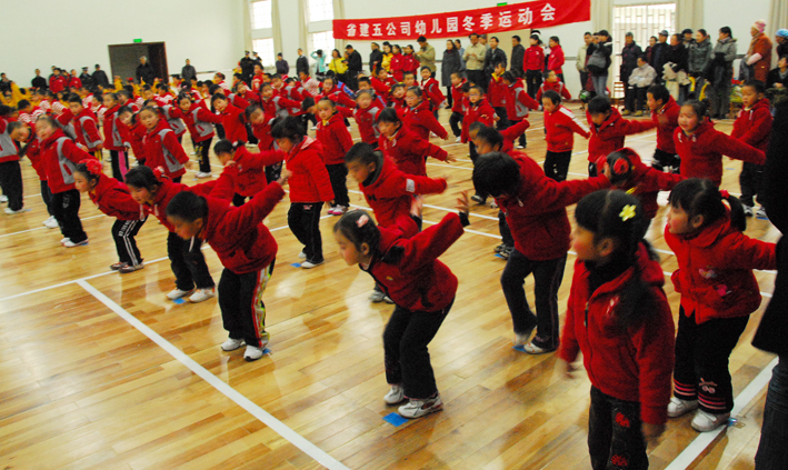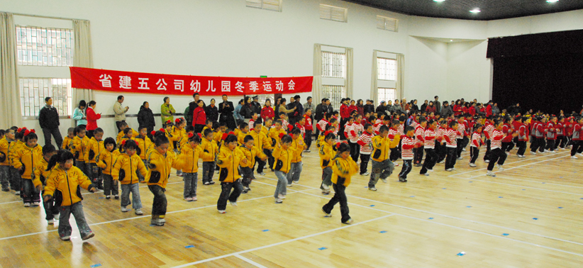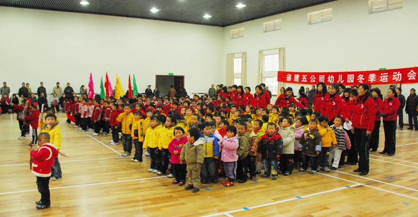 云南省暨昆明市一級幼兒園云南建工第五建設(shè)有限公司幼兒園繼2008年11月18日被昆明市教育局督導(dǎo)評估組專家評定為“優(yōu)級丙園”之后,元月9日又迎來了一年一度的冬季運動會暨“健康、和諧、快樂體育藝術(shù)節(jié)”,250余名幼兒和300余名家長參加了此次盛會,公司工會主席李興奎代表公司黨、政、工到會祝賀。