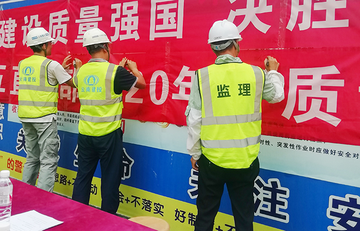 9月12日,第五直管部開展以“建設(shè)質(zhì)量強(qiáng)國,決勝全面小康”為主題的2020年質(zhì)量月活動啟動儀式,該啟動儀式分兩個會場,一是以曲靖棚改、曲靖中安監(jiān)獄、第四監(jiān)獄為一組的曲靖片區(qū)項(xiàng)目,二是以巧家邱家?guī)Z項(xiàng)目為主的昭通片區(qū)項(xiàng)目。