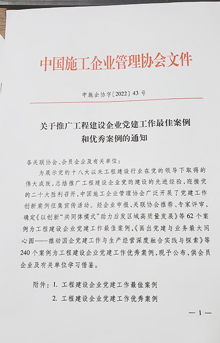 公司喜獲“工程建設(shè)企業(yè)黨建工作優(yōu)秀案例”榮譽