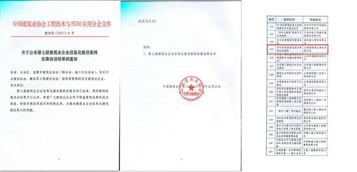 公司獲評(píng)第七屆建筑企業(yè)信息化建設(shè)案例Ⅲ類成果