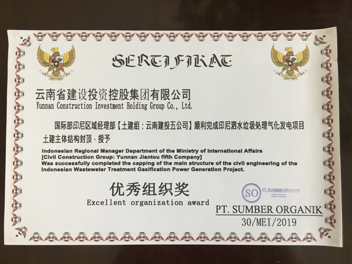 公司印尼泗水垃圾處理廠氣化發(fā)電項(xiàng)目獲優(yōu)秀組織獎