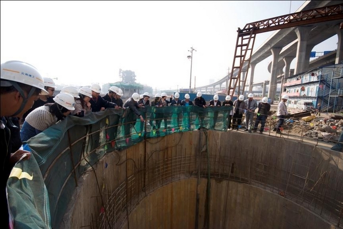 30余名技術(shù)骨干在第十污水處理廠項(xiàng)目進(jìn)行頂管施工交流