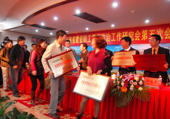 在近日召開的云南省建設(shè)職工思想政治工作研究會(huì)第五次代表大會(huì)上,云南五建被授予云南省住房城鄉(xiāng)建設(shè)系統(tǒng)優(yōu)秀思想政治工作政研會(huì)。全省共有12個(gè)單位獲此榮譽(yù)。五建公司黨委書記、董事長(zhǎng)、思想政治工作研究會(huì)會(huì)長(zhǎng)楊福和,公司職工思想政治工作研究會(huì)秘書長(zhǎng)高玉和等分別被授于云南省住房城鄉(xiāng)建設(shè)系統(tǒng)優(yōu)秀思想政治工作者。  ...