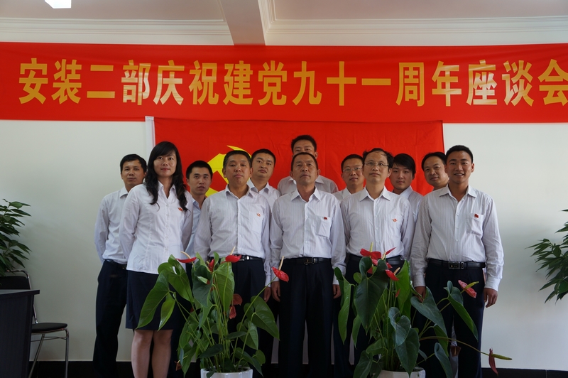 7月2日,第二安裝直管部在鮮紅的黨旗下召開座談會,慶祝黨的九十一歲生日。公司總經(jīng)理魏華、紀委書記吳倩等領(lǐng)導(dǎo)參加了座談會。 座談會以詩朗誦《七月贊歌》拉開帷幕,十二名黨員暢所欲言,緊緊抓住“學黨史、強黨性、知企情、做奉獻、促跨越”的主題,為黨建工作進一言,為企業(yè)發(fā)展添一計。 第二安裝直管...