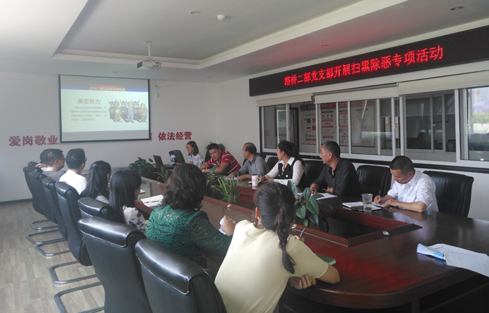 4月26日下午,路橋二部黨支部開展掃黑除惡專項活動,黨員及二線部門干部職工共16人參加。 會議集中學習了《關(guān)于在全省開展掃黑除惡專項斗爭的通告》《云南省國資委黨委關(guān)于轉(zhuǎn)發(fā)省委組織部開展“掃黑除惡——基層黨組織在行動”活動周的通知》等掃黑除惡專項斗爭的文件,傳達了公司掃黑除惡推進會精神,觀看了《開展掃黑除惡專項斗爭宣傳手冊》及公司紀委要求觀看的《清風云南——破“網(wǎng)”拔“...