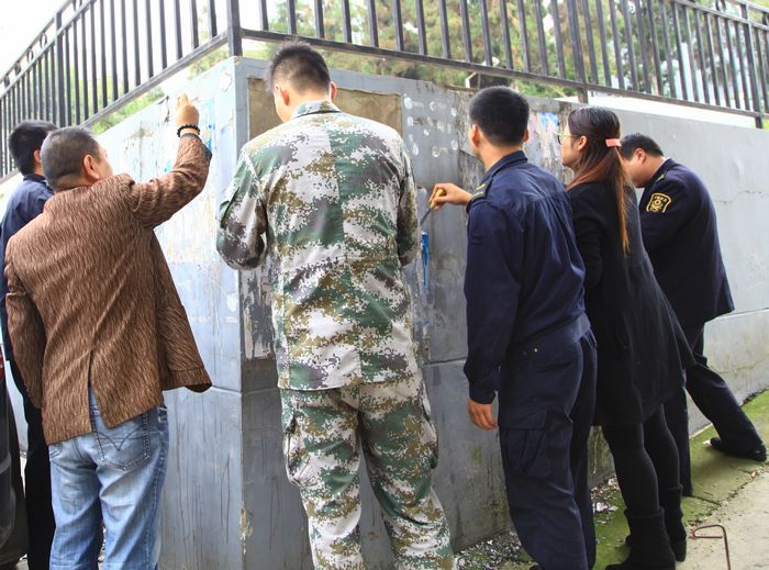 10月16、17日物業(yè)公司、保衛(wèi)部共10余名志愿者攜帶小鏟子、掃帚、撮箕、噴壺前往小團(tuán)山生活區(qū)住房,清除“牛皮癬”。 公司小團(tuán)山生活區(qū)由于住房緊湊、人口集中,一直以來(lái)都是“城市牛皮癬”的最?lèi)?ài)。大量的“牛皮癬”粘貼時(shí)間長(zhǎng)、粘貼量多、粘貼區(qū)域廣,紙張牢牢粘在墻上,清理起來(lái)比較困難。兩天時(shí)間,志愿者們共清除小團(tuán)山生活區(qū)20余面墻...