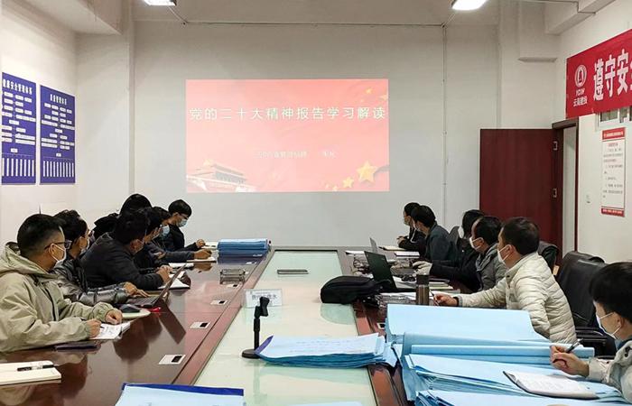 12月16日,五〇八直管項(xiàng)目部經(jīng)理到六盤水鳳凰薹項(xiàng)目宣講黨的二十大精神,項(xiàng)目部全體人員16人參加。宣講緊緊圍繞黨的二十大會(huì)議基本情況、會(huì)議主題和重大意義、十九屆中央委員會(huì)的工作報(bào)告全文組織學(xué)習(xí)。直管部經(jīng)理在學(xué)習(xí)中指出,黨的二十大是在全黨全國各族人民邁上全面建設(shè)社會(huì)主義現(xiàn)代化國家新征程、向第二個(gè)百年奮斗目標(biāo)進(jìn)軍的關(guān)鍵時(shí)刻召開的一次十分重要的大會(huì),具有承前啟后、繼往開來的里程碑意義。要深入學(xué)習(xí)領(lǐng)會(huì)報(bào)告…