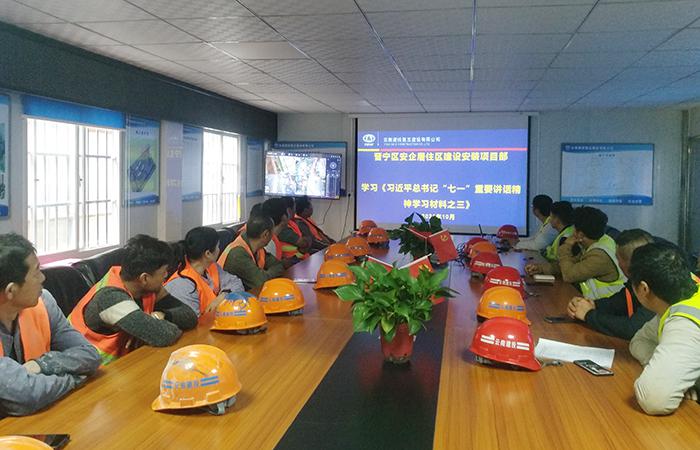 10月30日上午,晉寧區(qū)安企居住區(qū)建設(shè)安裝項(xiàng)目部在會(huì)議室,組織召開一線人員學(xué)習(xí)《習(xí)近平總書記“七一”重要講話精神學(xué)習(xí)材料之三》及《增強(qiáng)安全意識(shí),強(qiáng)化新安全法學(xué)習(xí)》精神。項(xiàng)目部管理人員、班組長、班組人員參會(huì)。此次會(huì)議首先學(xué)了《習(xí)近平總書記“七一”重要講話精神學(xué)習(xí)材料之三》永遠(yuǎn)把偉大建黨精神繼承下去發(fā)揚(yáng)光大?!耙话倌昵?,中國共產(chǎn)黨的先驅(qū)們創(chuàng)建了中國共產(chǎn)黨,形成了堅(jiān)持真理、堅(jiān)守理想,踐行初心、擔(dān)當(dāng)使命,…