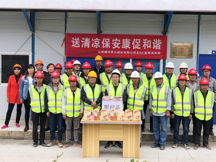 近日,氣溫持續(xù)高升,酷暑難耐,曲靖棚改項(xiàng)目部及時(shí)為現(xiàn)場(chǎng)的管理人員和工人們送上涼茶,并備好了防暑降溫的藥品。 工會(huì)主席斗未酬要求項(xiàng)目部落實(shí)好高溫天氣作業(yè)安全防范措施,切實(shí)做好當(dāng)前防暑降溫工作,科學(xué)安排作業(yè)時(shí)間。同時(shí)囑咐大家要注意休息,勞逸結(jié)合,防止中暑,確保人身安全。 炎炎夏日送清涼,絲絲關(guān)愛入心田。一份清涼,一份關(guān)懷,送清涼不僅送去了組織的清涼和關(guān)...