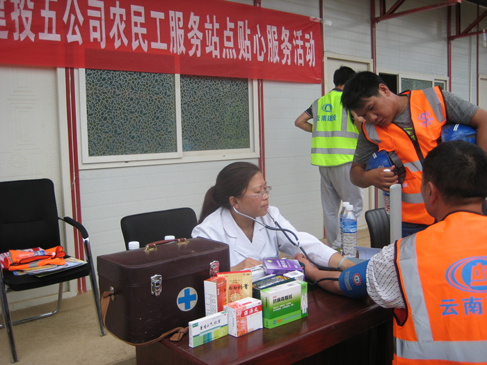 6月8日,公司工會(huì)來到大戛高速六工段農(nóng)民工服務(wù)站點(diǎn)為駐點(diǎn)務(wù)工者帶來一次健康體檢、理一次發(fā)、送一回清涼的“貼心服務(wù)”。 大戛高速農(nóng)民工服務(wù)站點(diǎn)里公司工會(huì)為六工段全體職工、農(nóng)民工送去了風(fēng)油精、藿香正氣水、板藍(lán)根沖劑、夏桑菊顆粒、參苓白術(shù)顆粒、保濟(jì)丸等防中暑藥物,還發(fā)放了創(chuàng)可貼、醫(yī)用酒精、棉球等日常外用藥品。退管會(huì)劉秀...