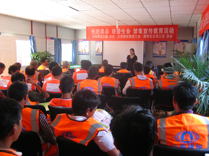 6月28日,公司工會(huì)禁毒宣傳小組來到香麗高速第十一項(xiàng)目部,向現(xiàn)場100余名管理及勞務(wù)人員進(jìn)行了禁毒宣傳。 公司工會(huì)副主席何君在動(dòng)員講話中強(qiáng)調(diào),廣大職工應(yīng)提高毒品辨識(shí)能力與禁毒意識(shí),積極參與禁毒活動(dòng)。活動(dòng)現(xiàn)場還發(fā)放了禁毒宣傳材料,播放了禁毒宣傳片《毒海深淵—云南合成毒品危害實(shí)錄》。片中一個(gè)個(gè)鮮活的實(shí)例深深的觸動(dòng)了在...